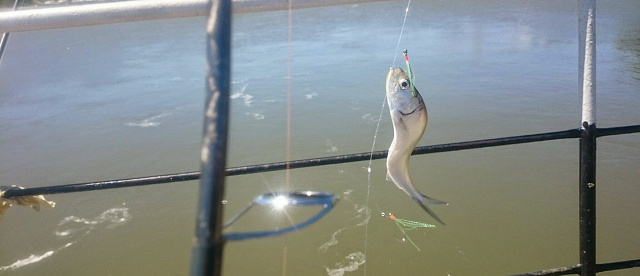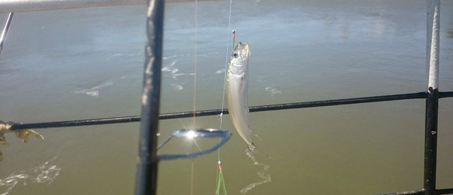 Но перейти переправу было не судьба. Резко поднялся сильный ветер и мысли о спиннинге пропали. Решили остаться ловить селедку. Клев уже в конце мая не тот, но селедка проскакивает. У некоторых попадалась даже крупная.