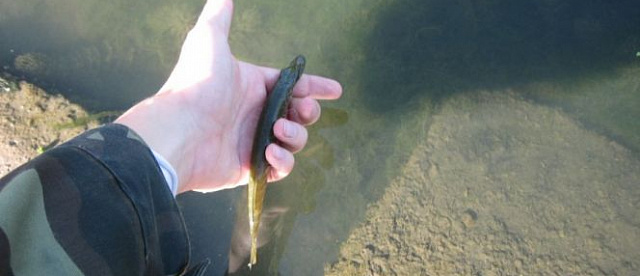 Вернулся слова на Ольховку, стал ровно под сбросами воды в ольховку из водохранилища. Видно, что малька стоит немеряно, и что его, малька постоянно кто-то гоняет.