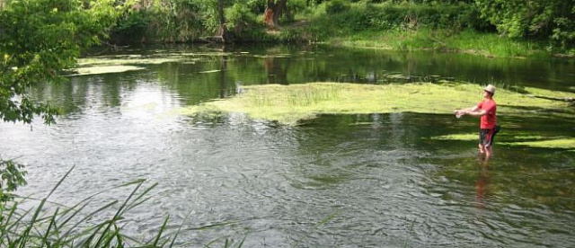 На перекат приехали двое местных, начали ловить сачком стрекоз, поставили перемет, и на быстрой струе ловили голавля. А тот клевал очень даже часто, один раз им удалось взять голавля под кило, а в целом часа за полтора набили штук 15.