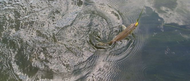 Пока я баловался микрухой, отец взял окуня на l-minnow и [[щука|мелкую щуку]] на 3D flatcrank. Поняв, что микруха не для этих краев, поменял палку на Шимано Некстейв (тест 5-20 гр.), сменил шнур и начал ловить на воблеры. Было много выхода [[голавль|голавля]], в том числе 4 схода на 00 Мепс-вертушку (сходы потому что из 3 крючков тройника осталось только 2 благодаря щуке на прошлой неделе).