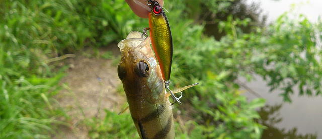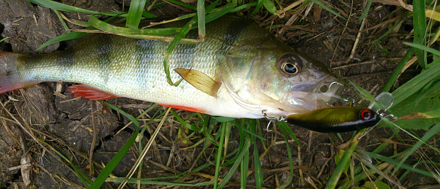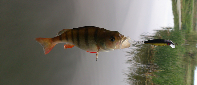 На каждом забросе приносил мне по окуню. Поймал 5 штук, пока 6-й его не оборвал сильным ударом (стоял тонкий флюр), а может это была и щука. После потери этого воблера на все остальное, что было в коробке напрочь не хотело клевать. Прошел безрезультатно сотню метров, пока не вернулся снова на окуневую точку, поставил реплику риджа и поймал щучку. Рыбалкой очень доволен, река Большой Несветай понравилась.