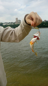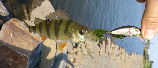 С братом жены обошли большой участок на левом берегу Дона в Ростове-на-Дону. Место там мелкое, поэтому ловили воблерами и блеснами. Всплесков много, за травой, будоражили они здорово, но кто там бил, так и не узнали. Зато неплохо ловился окунь на воблеры. Работали мелкие кренки.