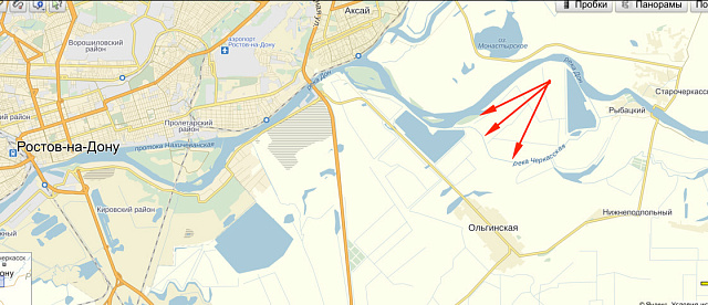 Изучая местность, куда можно поехать на рыбалку в окрестностях Ростова, наткнулся на небольшую реку/канал Черкасскую (она же Махинский канал). Течения практически нет, река вытекает из Дона и в него же впадает.