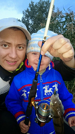 Ловили одним спиннингом на двоих. Мой спиннинг - его катушка )) И поймали пару окуней на отводной поводок. Причем приличных около 300 грамм.