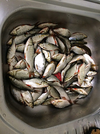 Ловили на опарыша и червя. Опарыша больше всего предпочитала красноперка. Сложилось такое впечатление, что кроме красноперки в водоеме рыбы нет. Мелкая красноперка не давала поплавку заглубиться даже на метр - сразу садится на крючок. Избавились от мелочи увеличением размера крючка, стали цеплять по 2-3 опарыша. Результат это немного улучшило, на крючок садилась рыба крупней, но все равно не превышала ладонь.