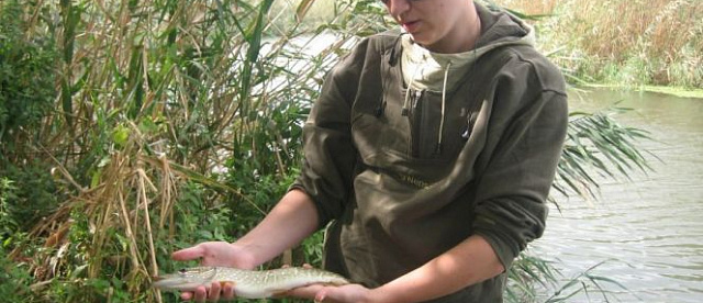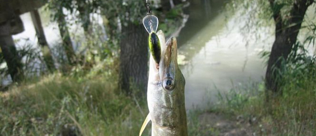 с первого заброса он дал мне щуку. Уже нечно среднее между травянкой