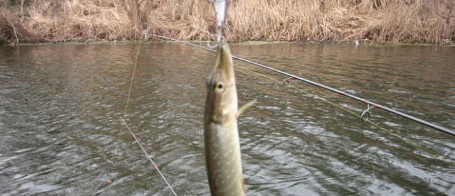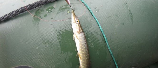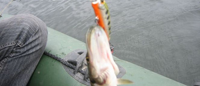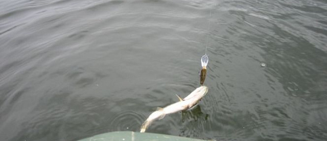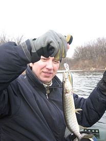 У меня уже 4 щуки у Жеки и Сереги по нулям. Но как выяснилось на время. Понимает технику твича Жека, и начинает бомбить на свой суспендер йо-зурик (Жека напомни модель) щуку до 200 грамм. К сожалению после моей килограмовой щуки нам попадалась мелочь от 50 до 200 грамм, было настоящее наществие щурят-карандашей. Перестали считать когда поймали по 15 штук каждый. После обеда взял первого карандаша и Серега на мой понтон, после того, как мы с Жекой объяснили как нужно ловить.