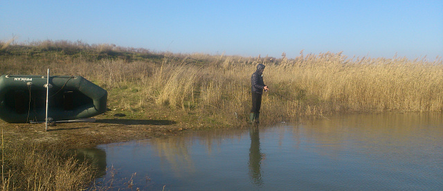 Но сильный ветер внес свои коррективы, и задержаться в этом месте не получилось. Якорь срывало и несло на камыш. Ну и при таких волнах тоже не половишь. Но я сюда обязательно вернусь!