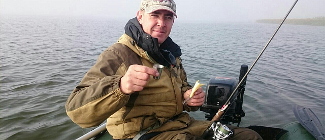 Встали с Максом в 6 утра, дальше своего носа ничего не видно, на воде туман. Как и вчера, решили сразу плыть к острову Даржинскому, ловить окуня. Взяли на буксир лодку с краснодарцами, но остров из-за тумана долго не могли найти. Плыли по навигатору "в молоко". Погода снова отличная - штиль, но за утро вымучали 2-х окуней. Правда бонусом нашли способ ловить бель на спиннинг.