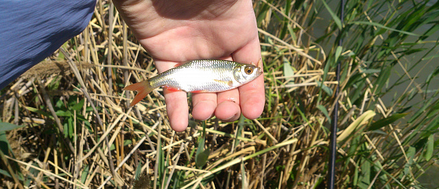 Нашел окно в камыше на Соленом озере, зашел на пару метров в воду, глубина через 5-6 метров от меня приличная, около 3-4 метров и начал облавливать. На первых забросах попались 2 красноперки размером с ладонь, так же попадалась плотва с ладонь и небольшой себель. Через минут 20 клев как отрезало, да и домой уже надо было возвращаться, увы фотографий улова я делал не все, так как расчитывал наловить куда больше, в итоге пара фоток мелочевки Чуть позже еще выложу небольшое видео