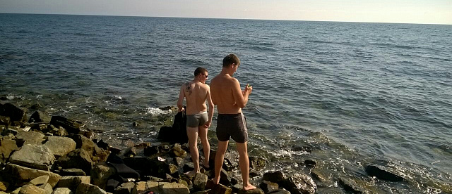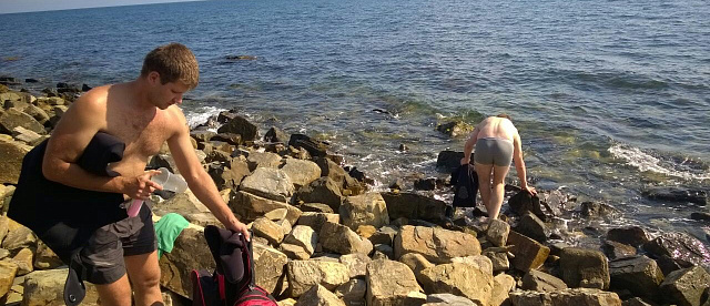 Очередная рыбалка была запланирована на море. Место было определено Малый Утриш, дорога туда была очень тяжелая, 8 км по горам и бездорожью, если честно немного стремно и машину жалко. Туда в основном все на джипах едут. Но оно того стоило, прекрасные места без тюлених пляжей. Вода чистая, теплая, под водой очень много рыбы но к сожалению и камней, что с берега делает рыбалку затруднительной. Но не смотря на это я немного разловился. Под водой впоймали краба, довольно приличного. Дома его сварили, оказался очень вкусный.