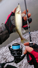 Узнав не утешительный прогноз погоды (резкое похолодание до -21), решаем ехать и искать открытую воду, многие водоемы Краснодарского края уже покрыты льдом. Но нас с Александром это не останавливает. Река нас встретила не совсем открытой водой, перспективные места были уже покрыты коркой льда и только в доль берега виднелись небольшие проталины, но мы были рады и этому. В первые минуты у меня хорошая поклевка и досадный сход через пару секунд. Потом затишье до обеда,ходили и искали воду и рыбу. И вот наконец нашли небольшой участок реки с большой площадью открытой воды. Вот здесь и были в пойманы эти небольшие судачки. Я хоть и не подержал рыбы в руках, но остался очень доволен рыбалкой, наконец увидел интересные места для рыбалки, теперь жду оттепели и сразу на эти места.