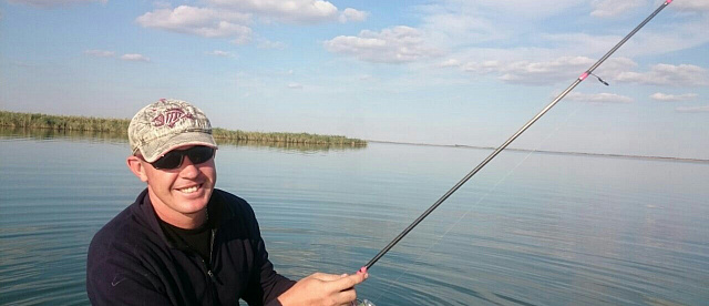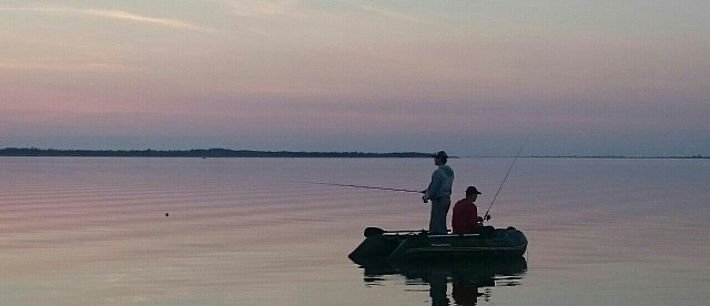 Заехали на базу "Закурганная" возле Степного Кургана после обеда в пятницу. Поселились, собрали лодку, выдвинулись. О Веселовском водохранилище раньше слышал много и кучу отчетов пересмотрел. Нам подсказали, что стоит выдвинуться ловить к острову Даржинскому. Вблизи острова есть свалы, на которых держится окунь.