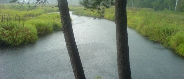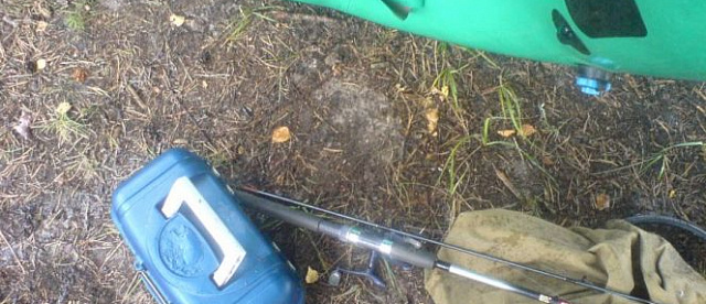 Прогноз погоды был неутешителен, тем не менее, взял лодку коробку с блёснами и спинниг и направился в заплыв. Только накачал лодку и поплыл - пошёл ливень. В итоге сидел на берегу полчаса под лодкой