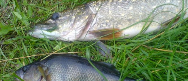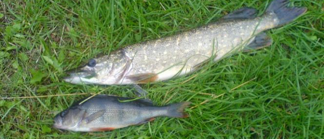 Итог достаточно внушительный для этого водоёма, щука 1кг, 4 окуня общим весом пол кило.