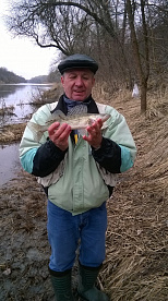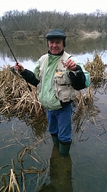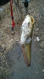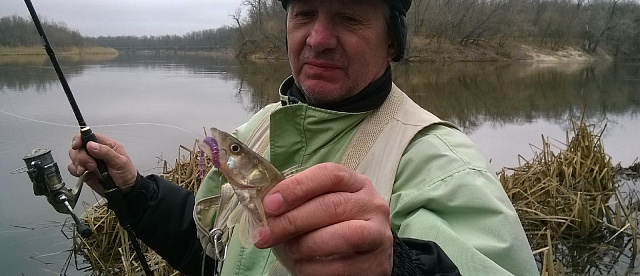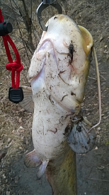 Получаем огромное наслаждение от сопративления рыбы, ведь это первая рыбалка (не считая РОГОЖКИНО) на открытой воде на Северском Донце в этом году. Еще попался мне "бонус" - на очередной проводке удар, подсекаю и фрекцион моей катушки запел. Понимаю, что оппонент на крючке более тех, что уже ощасливили. Начинаю качать, пару минут и объект показался на поверхности - это сомик забагрился за хвост. Вот такой сегодня оказался благосклонный к нам "ХОМУТОК"