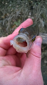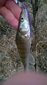 Вернулись обратно, стали чуть в стороне от ранней точки и дело пошло. Ловили в основном на дропшот отозвался окушок и проскакивали мелкие судачки.