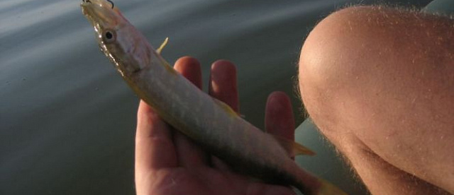 Там также была приличная волна которая несколько напрягала, но после прогремевшей в стороне грозы ветер стих такте внезапно как и начался. Рыба в этот раз своими размерами не баловала. Первый водоем подарил четыре [[щука|щуренка]] "неимоверных" размеров, а второй подарил двух подростков [[голавль|голавликов]].