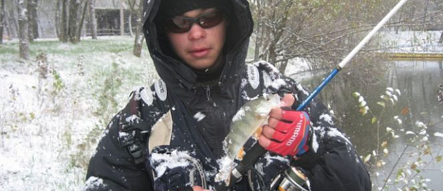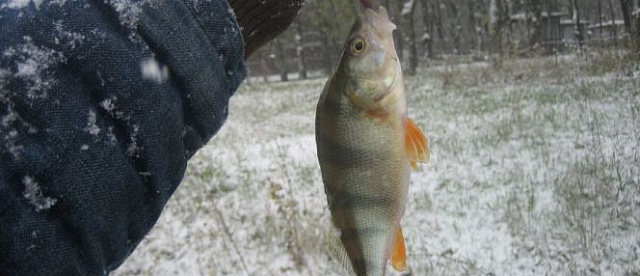 Ловить было очень тяжело из-за холода, снега и ветра. Окунь очень пассивный, трудовой. За два часа на озере поймали штук 15 на двоих, примерно поровну.